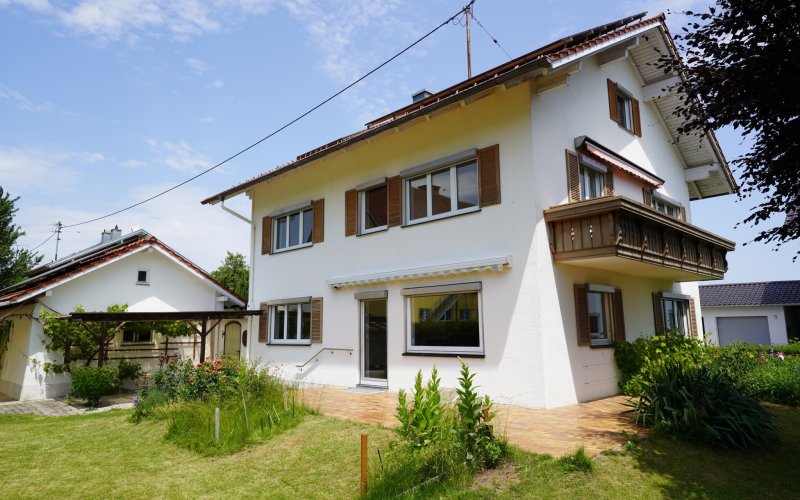 Ein ideales Heim zur manigfaltigen Verwendung. für Familien, die viel Platz und Raum zur Entfaltung wünschen. Vom Erdgeschoß bis zum Dachgeschoss hat das Haus 190 m ²Wohnfläche Ideal für Jung und Alt wohnen unter einem Dach. Ebenso für Wohnen und Arbeiten am selben Platz, zum Beispiel für Selbständige mit Bürobetrieben, Ideal für Rentner und Pensionäre aus den Großräumen Stuttgart, Frankfurt, dem Ruhrpott, die gerne ihren Lebensabend in Bayern verbringen wollen. Die Nähe zu München macht die Immobilie besonders interessant. Dieses Haus wurde laufend kostenaufwändig renoviert und modernisiert. 1994 neue Kunststoffenster 2002 neue Dach-Eindeckung 2002 Türen OG und Parkett Gang OG neu 2010 Hof neu geteert 2014 Eingangsbereich inkl. Eingangsstiegen erneuert 2014 Schirmbretter Dach erneuert 2025 Fußbodenbeläge teilweise erneuert. Zudem wurde die Energeiversorgung konsequent auf den neuen Srtand gebracht. 2007 neue Solaranlage zur Unterstützung der Warmwasserversorgung inkl. Pufferspeicher 2018 neue Pelletheizung inkl. Heizkörpererneuerung/Radiatoren im ganzen Haus. 2020 Photovoltaik, PV Anlage, 8,9 kWp mit 12 kWh Speicher Das Ein-bis Zweifamilienhaus wurde in massiver Bauweise errichtet und verfügt mit einer Außenwandstärke (EG und OG) von 36 cm über deutlich massivere Wandstärken als in den 1960 er Jahren üblich waren , die meisten Häuser wurden zu jener Zeit meist mit 24 er Außenwandstärken gebaut. Das Haus ist vollständig unterkellert mit separaten Kellerausgang zum großen Garten. Das Anwesen verfügt über eine Garage , 1 Carport und 2 Außenstellplätzen. An die Garage angebaut wurde 2 Räume für Gartengeräte, Fahrräder , Müllentsorgung, u.s.w. Der Ausbau des Garagen Dachgeschosses ist möglich. Im Haus gibt es 7 Zimmer 2 Bäder 2 Küchen 5 Kellerräume 2 Garagennebenräume Die großen Sonnenterrassen, der Balkon, der überdachte Freisitz/Laube, das tolle Biotop im Garten und der schöön angelegte Garten laden Sie zum Entspannen und Verweilen ein. Ein idealer Ort zum Relaxen Die Immobilie wurde auf einem Erbpachtgrundstück errichtet.