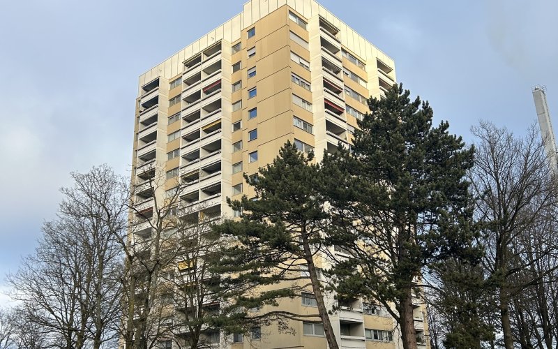 Diese gepflegte Wohnung befindet sich im 10. Obergeschoss eines 15-stöckigen Hochhauses in der Bresslauerstraße 10, 89321 Ludwigsfeld. Zwei Aufzüge sorgen für einen komfortablen Zugang zur Wohnung.