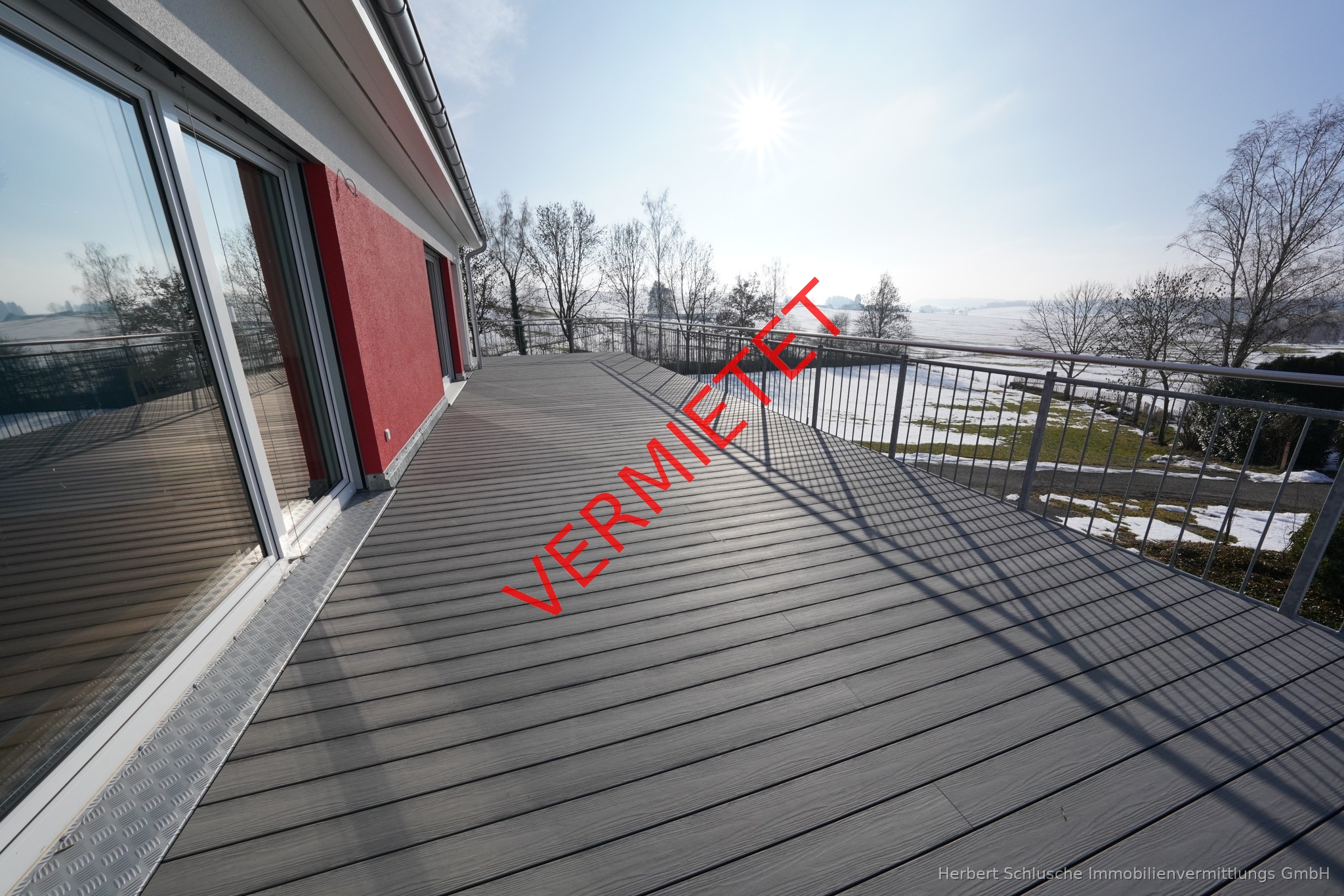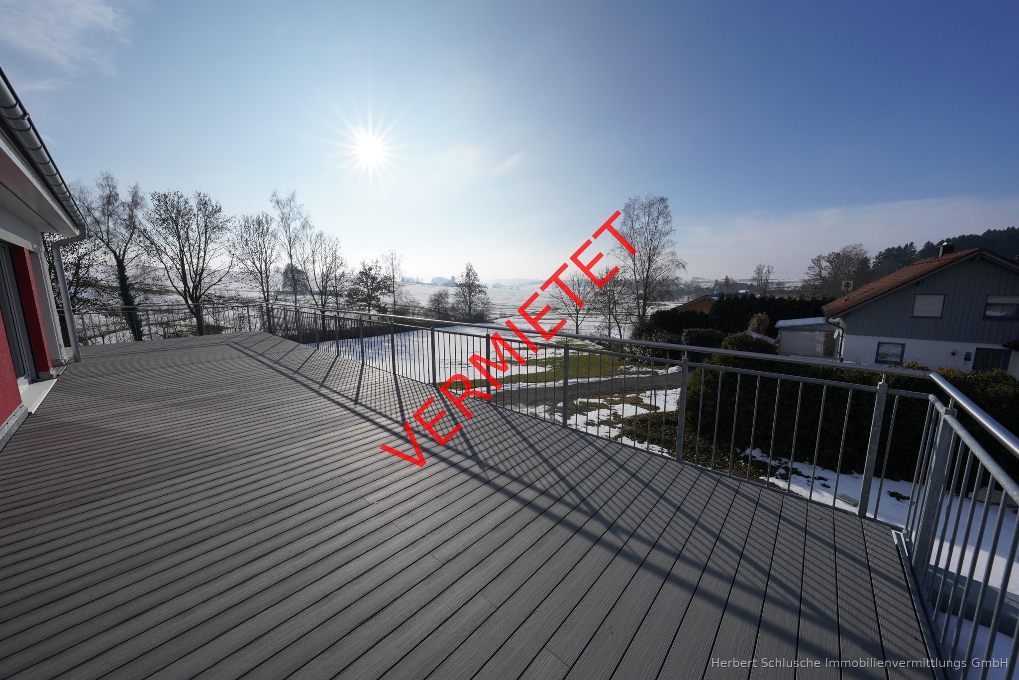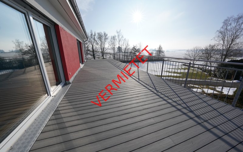 Wir bieten Ihnen eine ganz außergewöhnliche 3 Zimmer Penthausneubauwohnung mit riesigen umlaufenden Balkonflächen zum Mieten an . Von der Wohnung aus haben Sie einen herrlichen Landschaftsweitblick ins Grüne. Wegen der unverbaubaren Süd-Westausrichtung ist die Wohnung in sehr sonniger Lage und lichtdurchflutet . Für Ihren PKW oder PKW s steht Ihnen eine Garage und 1 PKW Aussenstellplatz zur Verfügung. Auch ein separater Abstellraum anstelle eines Kellerraumes gehört zu dieser Penthauswohnung Die Wohnung hat eine Wohnfläche von 86 m ² , die großen Balkonflächen sind/wurden dabei nicht mit berechnet. In der Veranschlagten Kaltmiete ist Garagenmiete inklusive Mit üblicher Einbeziehung anteiliger Balkonflächen kommt die Wohnung auf über 100 m ² Wohnfläche