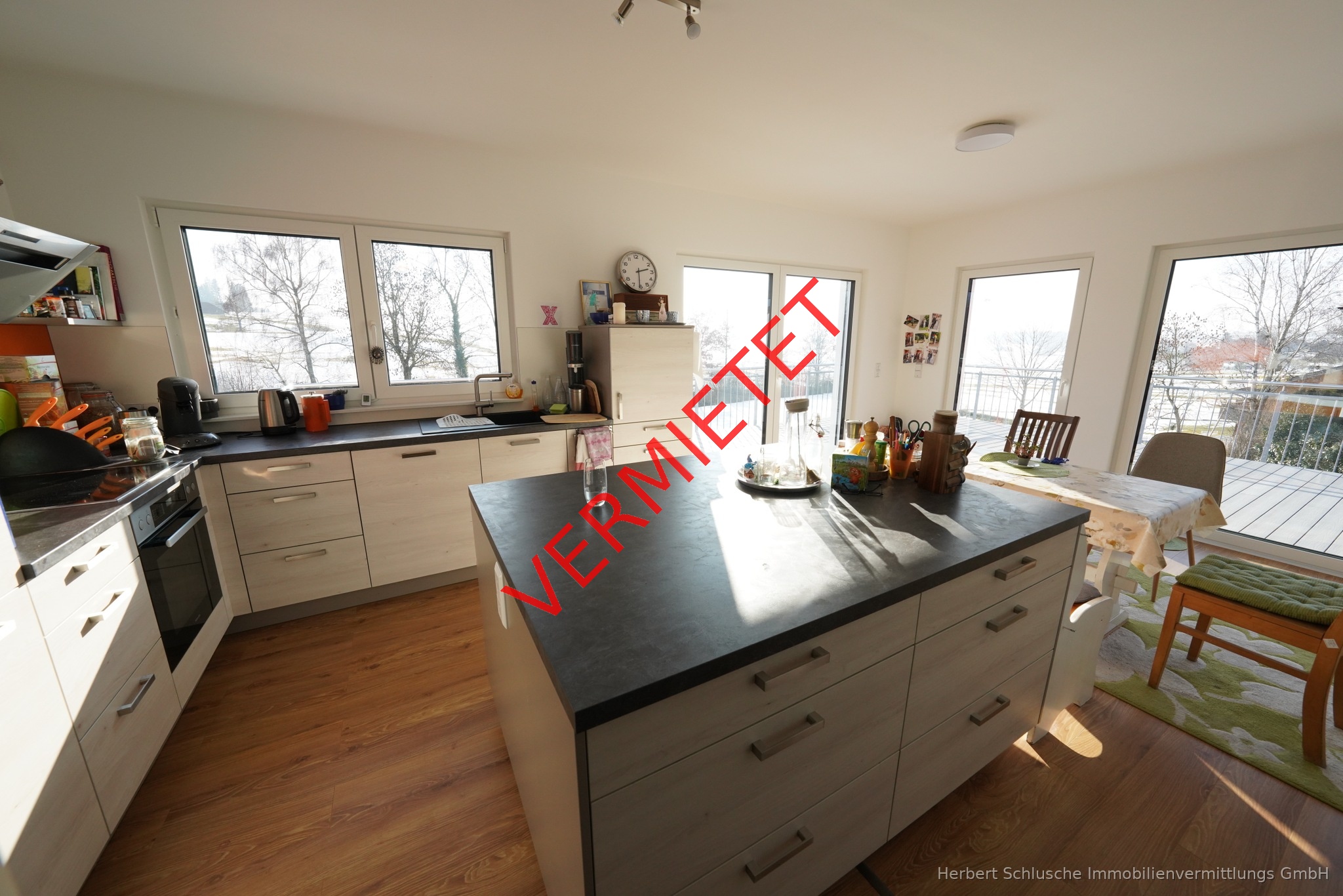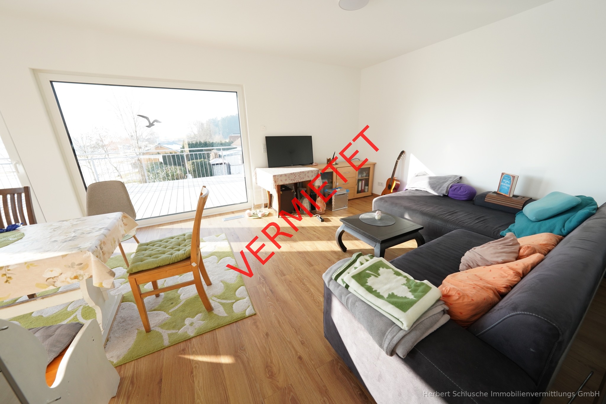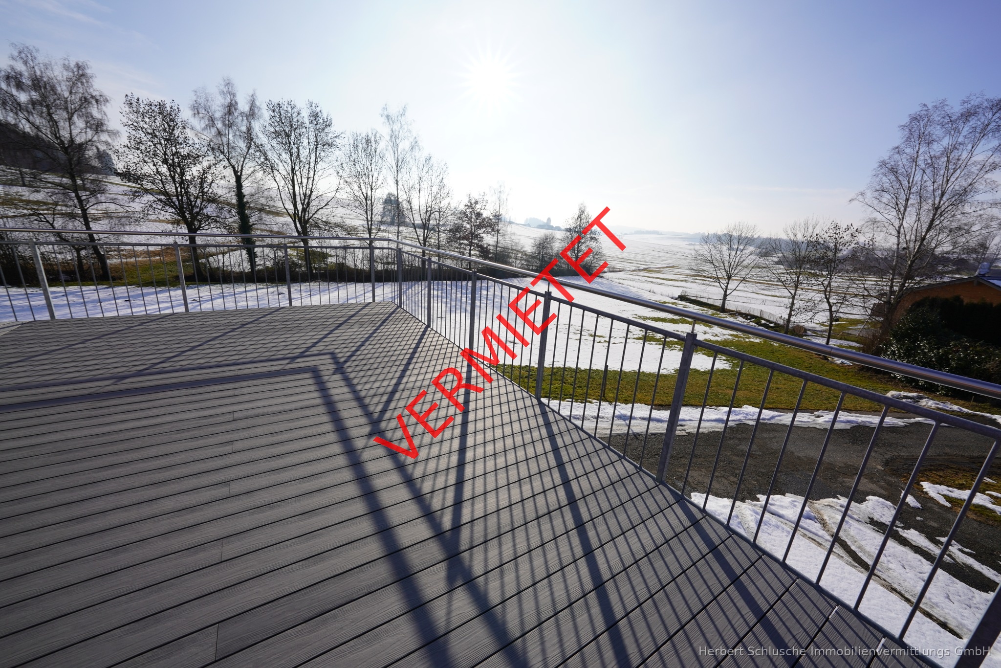 Wir bieten Ihnen eine ganz außergewöhnliche 3 Zimmer Penthausneubauwohnung mit riesigen umlaufenden Balkonflächen zum Mieten an . Von der Wohnung aus haben Sie einen herrlichen Landschaftsweitblick ins Grüne. Wegen der unverbaubaren Süd-Westausrichtung ist die Wohnung in sehr sonniger Lage und lichtdurchflutet . Für Ihren PKW oder PKW s steht Ihnen eine Garage und 1 PKW Aussenstellplatz zur Verfügung. Auch ein separater Abstellraum anstelle eines Kellerraumes gehört zu dieser Penthauswohnung Die Wohnung hat eine Wohnfläche von 86 m ² , die großen Balkonflächen sind/wurden dabei nicht mit berechnet. In der Veranschlagten Kaltmiete ist Garagenmiete inklusive Mit üblicher Einbeziehung anteiliger Balkonflächen kommt die Wohnung auf über 100 m ² Wohnfläche