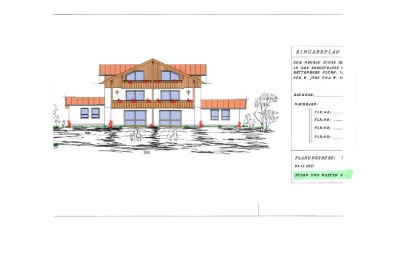 Sie sind auf der Suche nach einer neuestem Stand der Technik errichteten Wohnimmobilie/Familiendomizil im Oberallgäu mit spektakulärem Bergblick und überschaubarer Gartenarbeit? Sie würden gerne Bauen Ihnen fehlt aber das Grundstück dazu, dann kommen Sie uns, dann sind Sie bei uns richtig, lesen Sie einfach weiter. Das Haus eignet sich perfekt für Ihren Eigenbezug als Familiendomizil oder zur Nutzung als Altersruhesitz oder als Ferienhaus mit integriertem Gästebereich oder zur Nutzung als Kapitalanlage zum Zwecke der Vermietung verwendbar. Manch Käufer organisiert sich seinen Altersruhesitz schon bei Zeiten vor seiner Verrentung oder Pensionierung. Bis zum Ruhestand wird die Doppelhaushälfte zuerst vermietet, wenn Sie in Ruhestand gehen, nutzen Sie das Haus selber als Altersruhesitz. Und wer viel Geld hat kann ja gleich beide Doppelhaushälften zusammen kaufen. Wir bieten 2 sehr hochwertige nachhaltig gebaute Neubaudoppelhaushälften in exklusiver massiver Bauausführung mit hochwertigen Baumaterialien an . Die Grundstücke für die beiden Doppelhaushälften sind unterschiedlich groß, das kleinere Grundstück hat 350 m ², das größere Grundstück hat eine Fläche von 455 m ² Die in unserem Exposee angebote Doppelhaushälfte hat 161 m ² Wohnfläche auf drei Etagen verteilt, sowie einem im Untergeschoss vorhandenem Hobbyraum und einer angebauten Doppelgarage Mit dem Keller/Hanggeschoss und der Fläche der Doppelgarage steht Ihnen zusätzlich zur Wohnfläche eine hausinterne Nutzfläche von ca. 104 m ² zur Verfügung. Weil mit dem Neubau der Doppelhaushälften noch nicht begonnen wurde, besteht für Sie sicherlich die Möglichkeit, dass in der Vorausplanung noch Änderungen und Gestaltungsspielräume noch möglich sind. Das ausgebaute Dachgeschoss mit sichtbarem Fichtenholzdachstuhl und vorgelagertem Südbalkon, von welchem sich schöner Bergblick bietet, ist das Schmuckstück im Haus. Dieser Platz eignet sich für Gäste, als Arbeitsplatz oder Ihre größeren Kinder. Es gibt im Dachgeschoss ein Schlafzimmer, einen offenen Wohn- Ess- Küchenbereich, ein Bad mit bodengleicher Dusche, WC und Waschtisch. Im Obergeschoss befinden sich drei Schlafzimmer und das Hauptbad sowie der vorgelagerte Balkon nach Süden mit Bergblick. Im Erdgeschoss befindet sich gleich neben dem Eingangsbereich ein Gäste- WC, es gibt einen Abstellraum, eine Speis oder Abstellraum und das geräumige Wohnzimmer mit großer Terrasse nach Süden und Bergblick. Die Küche ist zum Wohnzimmer hin offen. Am zweizügigen Kamin im Wohnbereich, lässt sich ein Ofen für feste Brennstoffe anschließen. Die Bauträger legen bei diesem Bauvorhaben besonderes Augenmerk auf eine nachhaltige und langlebige, ökologische Bauausführung. Die Außenwände sind aus dämmenden 36,5 cm starken, quer gemauertem Porotonziegelmauerwerk erstellt, mit mineralischem Außenputz nach Farbauswahl entweder weiß oder grau. Die Innenwände sind ebenfalls aus Ziegelmauerwerk erstellt. Die Heizung und Warmwasserbereitung erfolgt über eine ökologische Luftwärmepumpenheizung der Marke Novelan. In allen drei Wohngeschossen wird es eine separat regulierbare Fußbodenheizung geben. Im Hauptbad gibt es zusätzlich einen Handtuchtrockner. Es werden Kunststoffenster mit Dreifachisolierverglasung eingebaut. Alle Böden in den Wohn- und Schlafräumen werden mit hochwertigen Landhausdielen nach Mustervorgaben belegt. Die einzelenen Stockwerke sind über eine exklusive Holztreppe miteinander verbunden. Selbstständlich werden die Ausstattungswünsche im Rahmen der technischen Machbarkeit gegen Verrechnung je nach Baufortschritt berücksichtigt. Wir freuen uns auf Ihre Aufrage, im persönlichen Gespräch nehmen wir gern Bezug auf Ihre konkreten Fragen. Bei Zustandekommen eines Kaufvertrages stellen wir für dieses Wohnhaus bei erfolgreicher Vermittlung nur 1 % plus gesetzliche Mehrwertsteuer 1,19 % Maklerprovision in Rechnung.