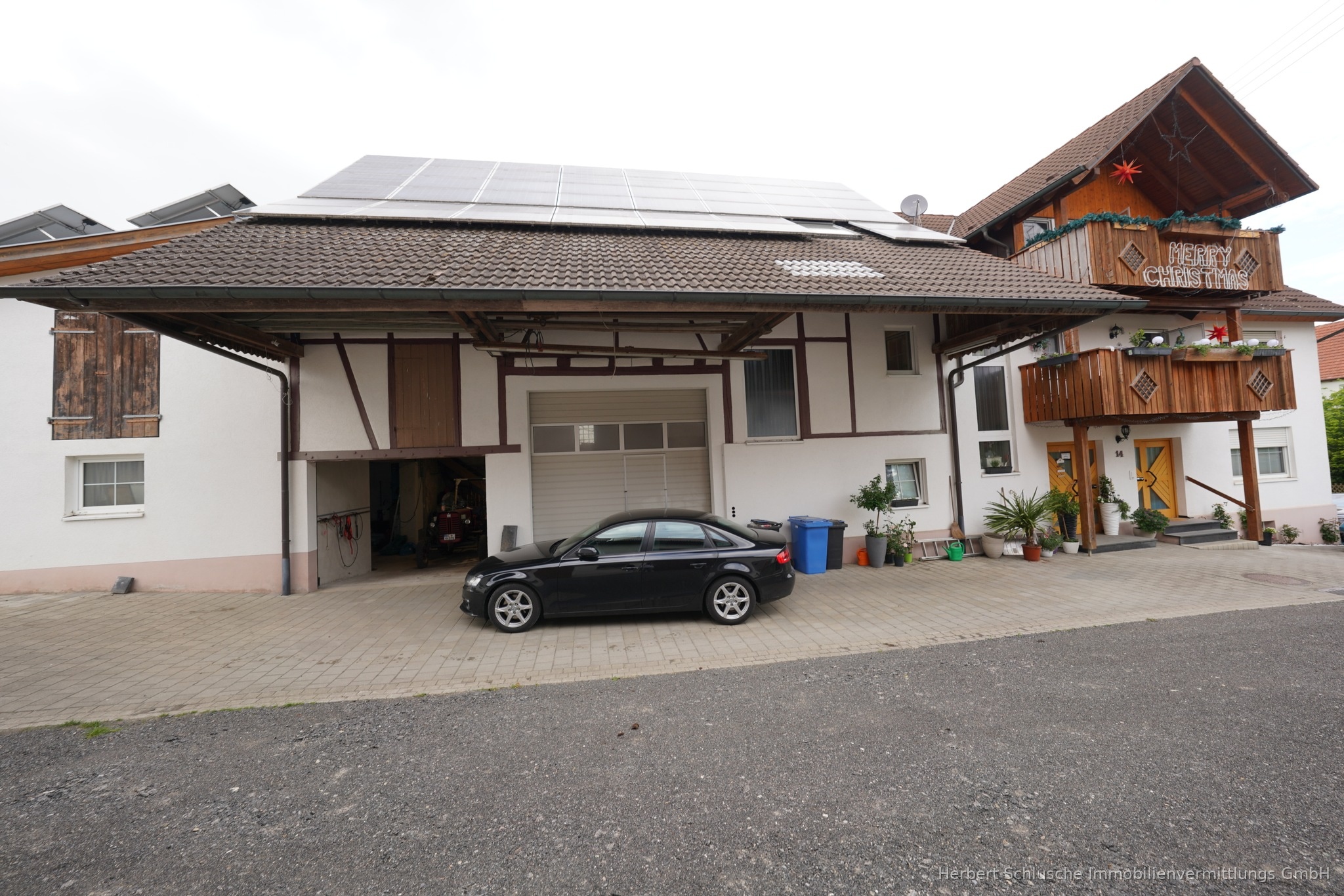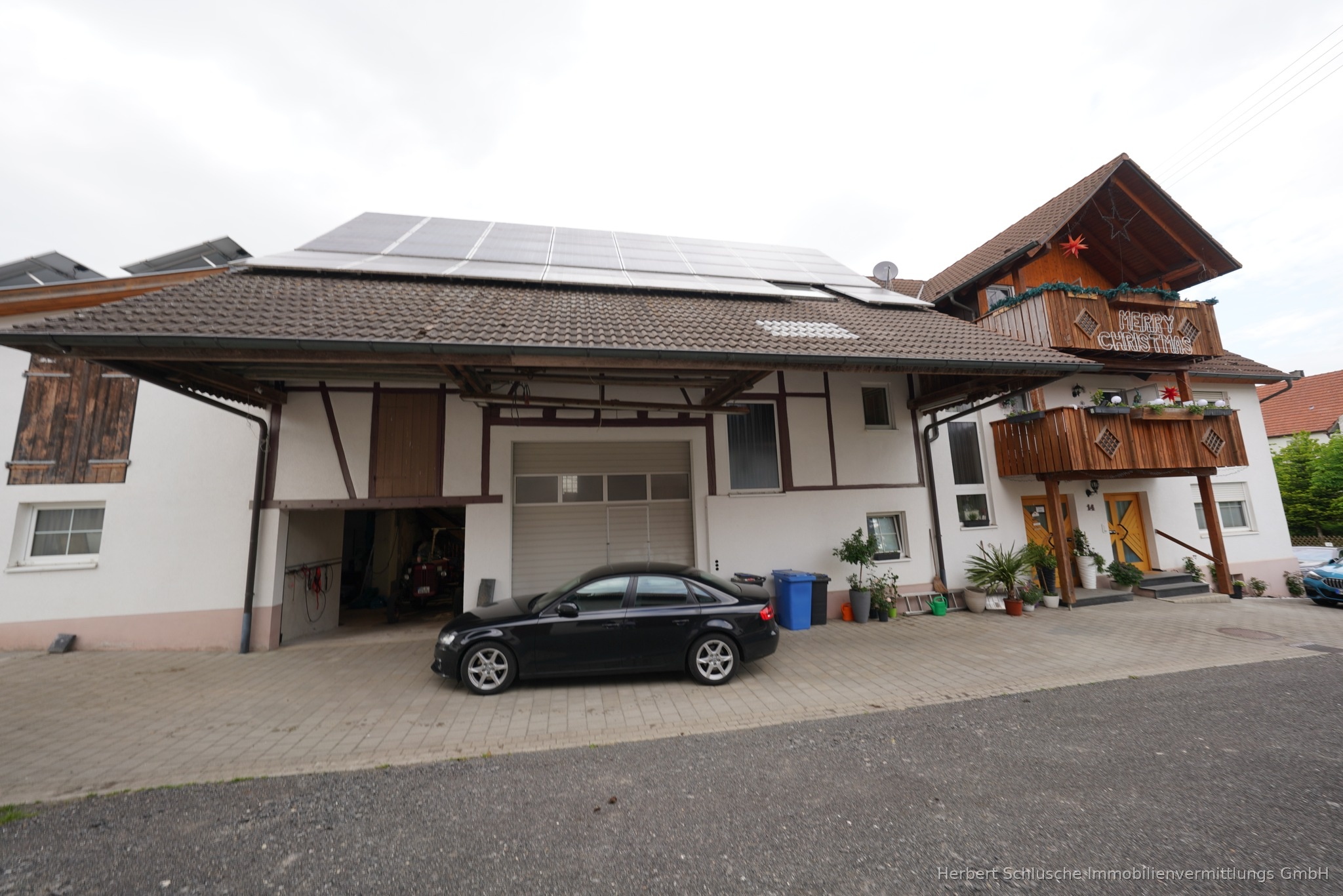 Ideal für Interessenten , die zu Ihrer persönlichen Entfaltung um sich herum viel Platz brauchen, überdacht ihrem Hobby nachgehen können Ideal für kleinere Handwerksbetriebe mit Wohnen und Arbeiten unter einem Dach. Ideal für Handel und Lageristen mit Wohnen und Arbeiten unter einem Dach. Ideal für Interessenten die weite Wege scheuen, alles an einem Platz haben wollen um sich effizient und wirtschaftlich verwirklichen wollen. Mit Wohnen und Arbeiten unter einem Dach lässt sich das optimieren. Der Wohnbereich ist aktuell in 2 Wohnungen unterteilt. Die Hauptwohnung Maissonette über 2 Etagen (1. Obergeschoß und Dachgeschoß) sogar mit Galerie, ein wahres Schmuckstück hat 168 m ² Wohnfläche. Im Erdgeschoss gibt es zusätzlich eine vermietete Einliegerwohnung mit 64 m ² Wohnfläche. Diese Wohnung erwirtschaftet Ihnen bezogen auf die Fläche eine hohe Mieteinnahme. Die Gesamtwohnfläche von beiden Wohnungen beträgt 232 m ² im Anwesen Die monatliche Kaltmiete für die Einliegerwohnung beträgt aktuell 600 €, die Mieteinnahme aus der Einliegerwohnung hilft Ihnen bei der Finanzierung. Auf dem Dach befindet sich eine Photovoltaikanlage , die Ihnen monatlich weitere 700 € erwirtschaftet. beides zusammen einen Ertrag von mtl. 1300 € einbringt. Mit der Mieteinnahme aus der Wohnung und den Erträgen aus der Photovoltaikanlage sind ein Teil Ihrer Finanzierungskosten gleich abgedeckt. Im 1. Obergeschoss und im Dachgeschoss befindet sich der ansprechenden Eigenwohnbereich als Maissonettewohnung über 2 Etagen mit 168 m ² Wohnfläche. Zur Vergrößerung der Wohnfläche lassen sich Einliegerwohnugn und der Eigenwohnbereich miteinander verbinden Wem dann 232 m ² Wohnfläche immer noch nicht ausreichen, findet im ehemaligen Bauernhaus unendlich viel weitere Ausbaureserven. Im ehemaligen Stall und Scheune gibt es heute auf bis zu 4 Ebenen unendlich viel Nutzflächen. Für Fahrzeuge , auch hohe Nutzfahrzeuge gibt es Ein und Ausfahrtore