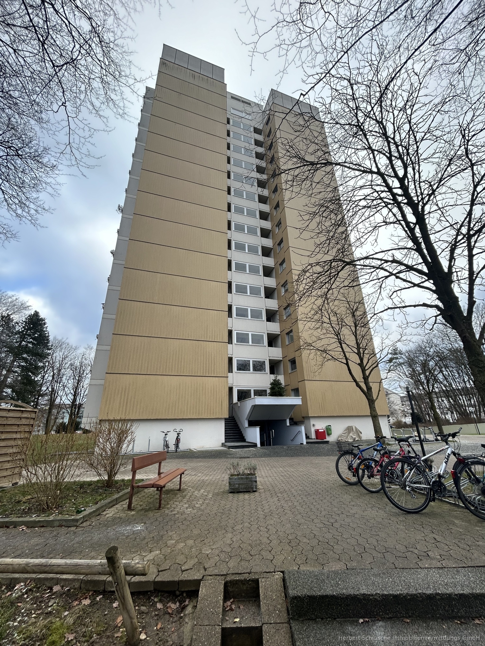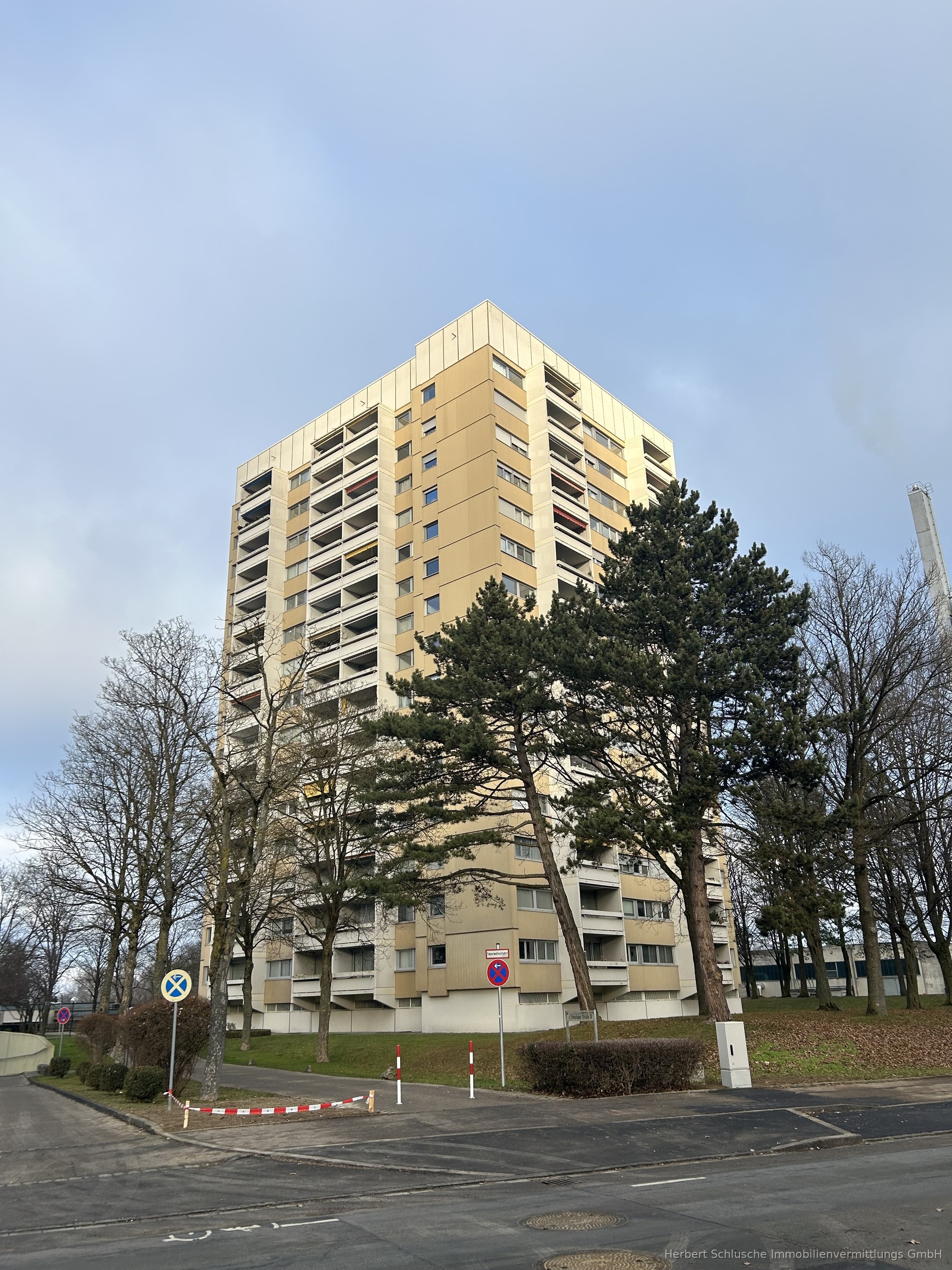 Diese gepflegte Wohnung befindet sich im 10. Obergeschoss eines 15-stöckigen Hochhauses in der Bresslauerstraße 10, 89321 Ludwigsfeld. Zwei Aufzüge sorgen für einen komfortablen Zugang zur Wohnung.