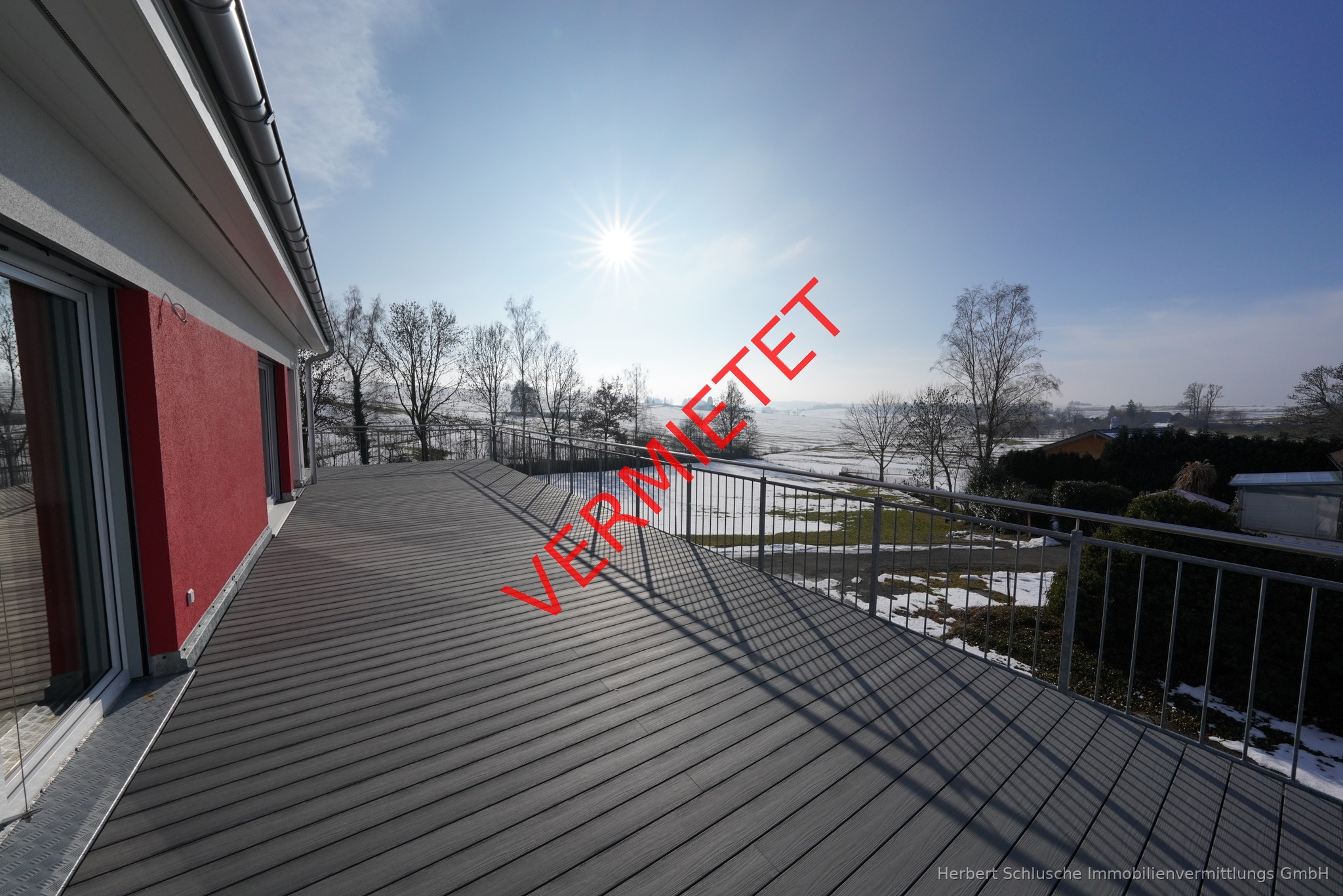 Wir bieten Ihnen eine ganz außergewöhnliche 3 Zimmer Penthausneubauwohnung mit riesigen umlaufenden Balkonflächen zum Mieten an . Von der Wohnung aus haben Sie einen herrlichen Landschaftsweitblick ins Grüne. Wegen der unverbaubaren Süd-Westausrichtung ist die Wohnung in sehr sonniger Lage und lichtdurchflutet . Für Ihren PKW oder PKW s steht Ihnen eine Garage und 1 PKW Aussenstellplatz zur Verfügung. Auch ein separater Abstellraum anstelle eines Kellerraumes gehört zu dieser Penthauswohnung Die Wohnung hat eine Wohnfläche von 86 m ² , die großen Balkonflächen sind/wurden dabei nicht mit berechnet. In der Veranschlagten Kaltmiete ist Garagenmiete inklusive Mit üblicher Einbeziehung anteiliger Balkonflächen kommt die Wohnung auf über 100 m ² Wohnfläche